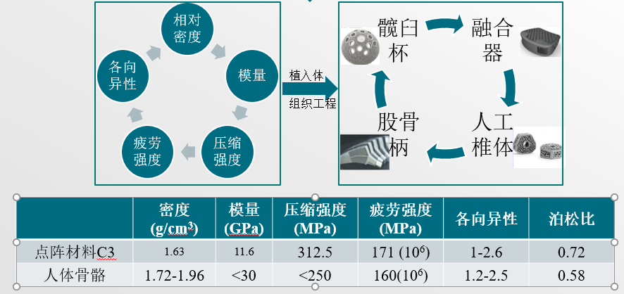 该项目立足于创始团队博士课题的成果,对3D打印点阵材料结构的优化,使其点阵材料的模量,强度和密度与人体骨匹配,然后用该点阵材料嵌入植入体(如融合器,人工椎体)设计,从而获得最融合效果